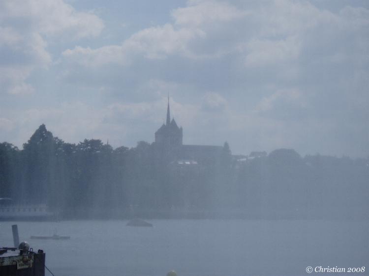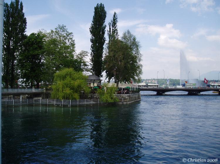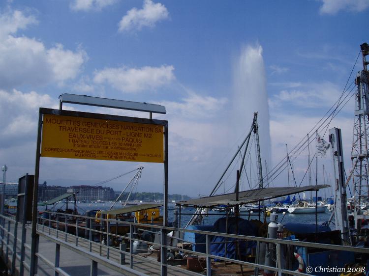 Le jet d'eau en mai et l'embarcadère pour les mouettes...